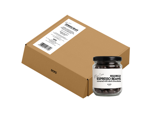 dots espresso beans white chocolate and cinnamon master carton - 12 jars